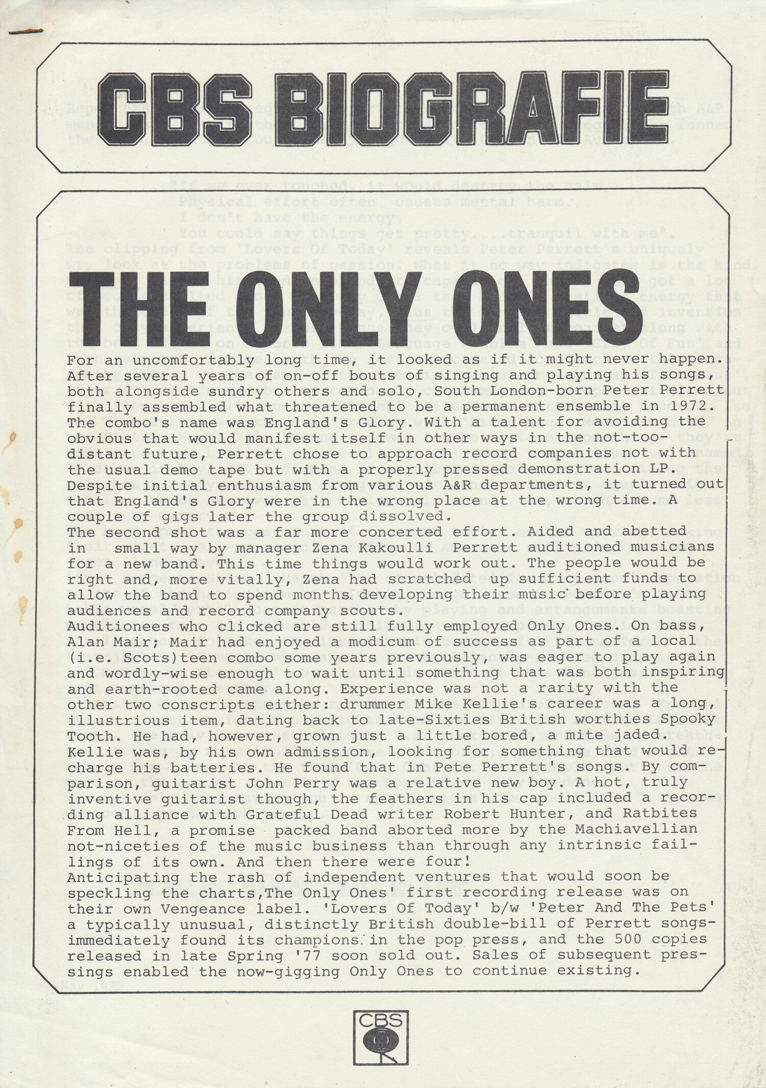 [105037/102027] CBS. The Netherlands. 1980. 21.0x29.7cm. Original. 2pp with 12.4x17.8cm publicity press photo. Condition: very good (press release) to excellent (press photo).