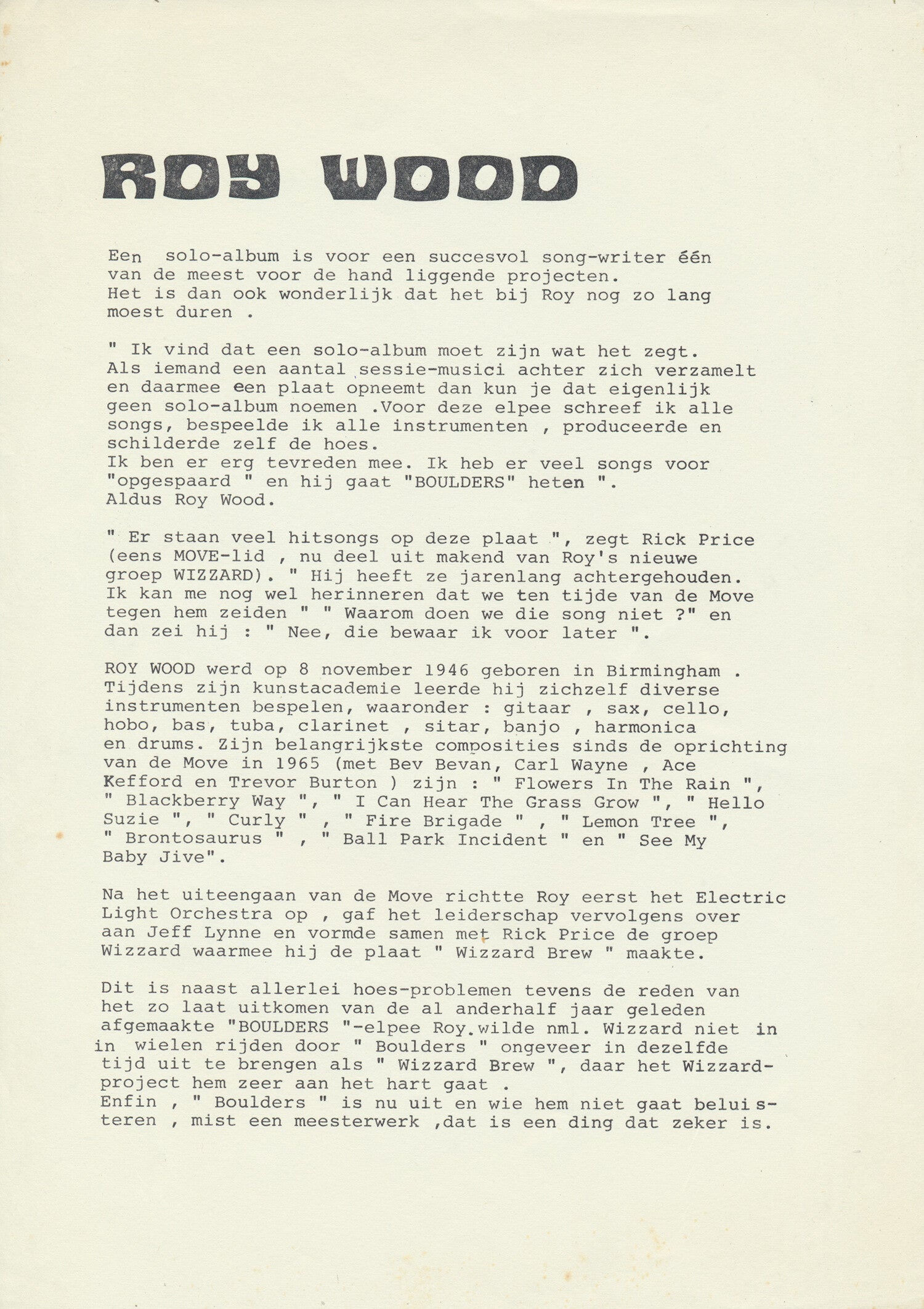 ELO - Electric Light Orchestra - Roy Wood - 1973 [Holland] - Press Release