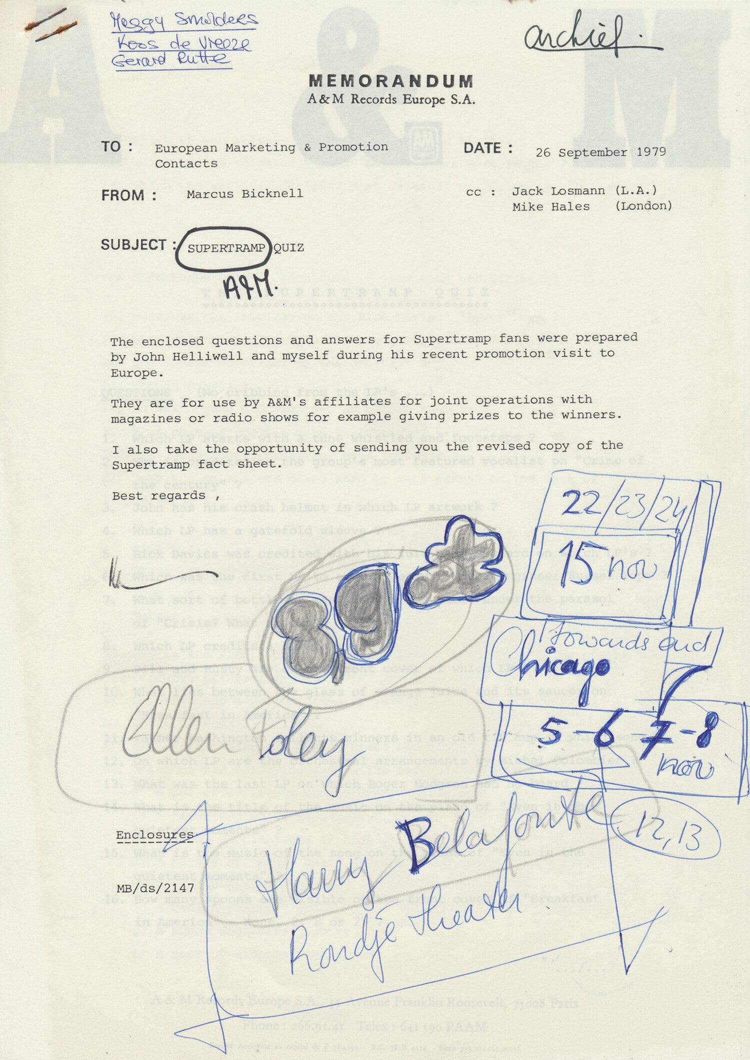 Supertramp - Memorandum - Quiz - 1979 [France] - Press Release