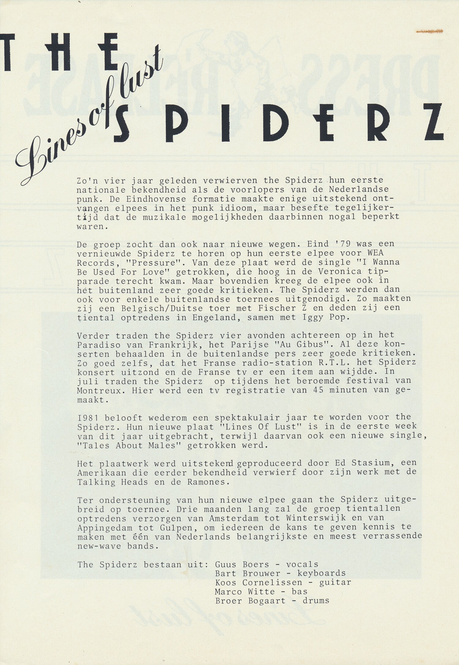 [105409] WEA Records. Hilversum, The Netherlands. 1981. 21.0x29.7cm. 2pp. Original. Condition: very good plus.
