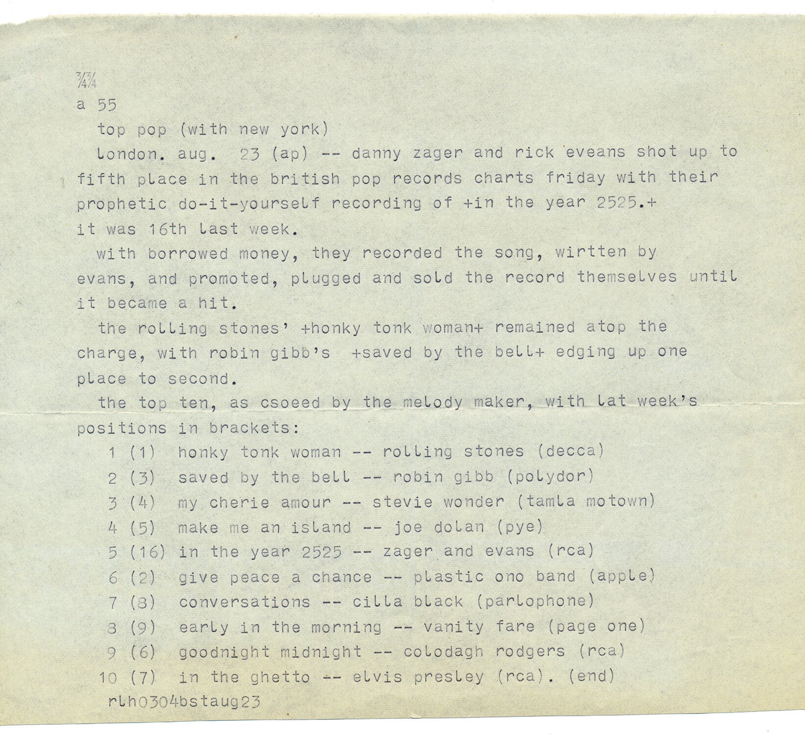 [106491] Associated Press. USA. August 23. 1pp. Original. Folded. Condition: very good plus.
