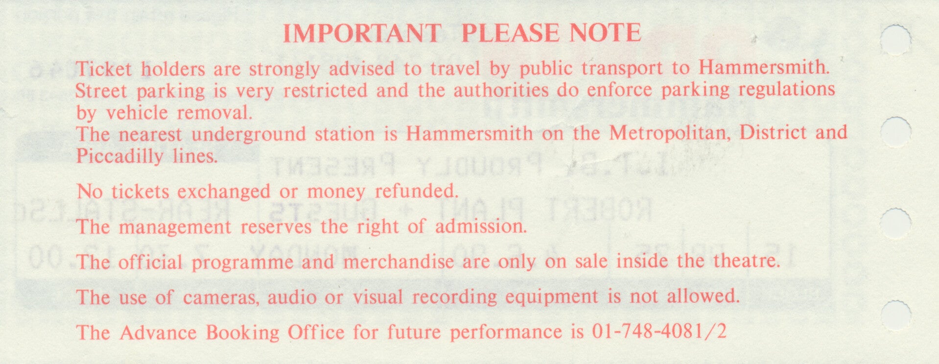 [106642] Hammersmith Odeon, London, June 4, 1990. Block 15, Row BB, Seat 25. 13.0x5.0cm. Condition: very good plus, folded.