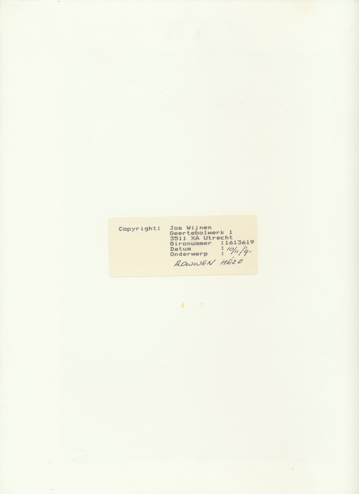 [107337] Jos Wijnen. Utrecht, The Netherlands. November 10, 1991. 23.8x30.4cm. Original. Stickered on reverse. Condition: very good plus, small corner tear.