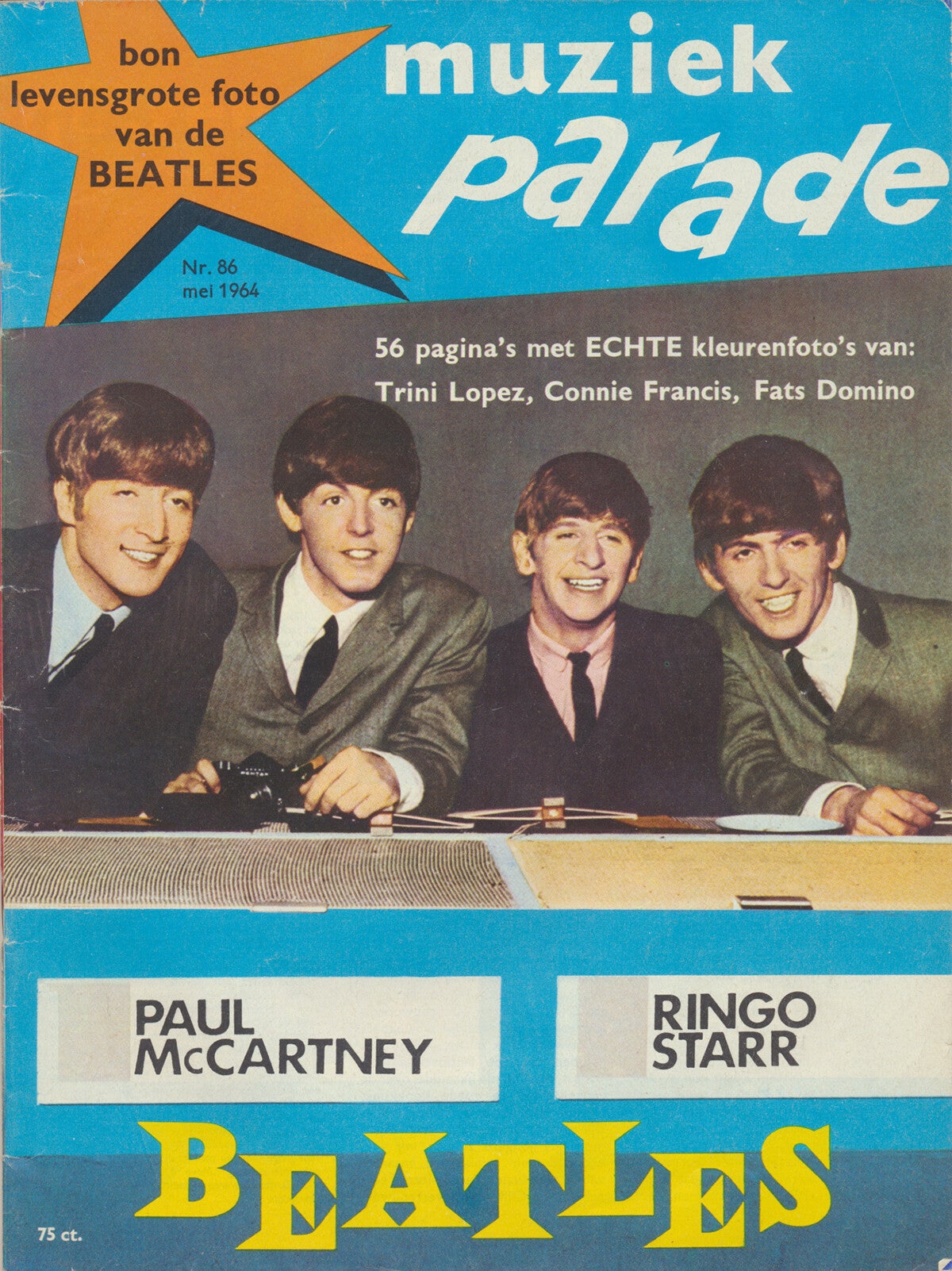 [100300] International Musicals NV, Hilversum. May 1964. 28.5x21.5cm. 56pp. First edition. The Beatles (several articles) - Cliff Richard - Adamo - The Jumping Jewels - Trini Lopez - Rob de Nijs - Elvis Presley - Connie Francis. Condition: very good plus, complete.