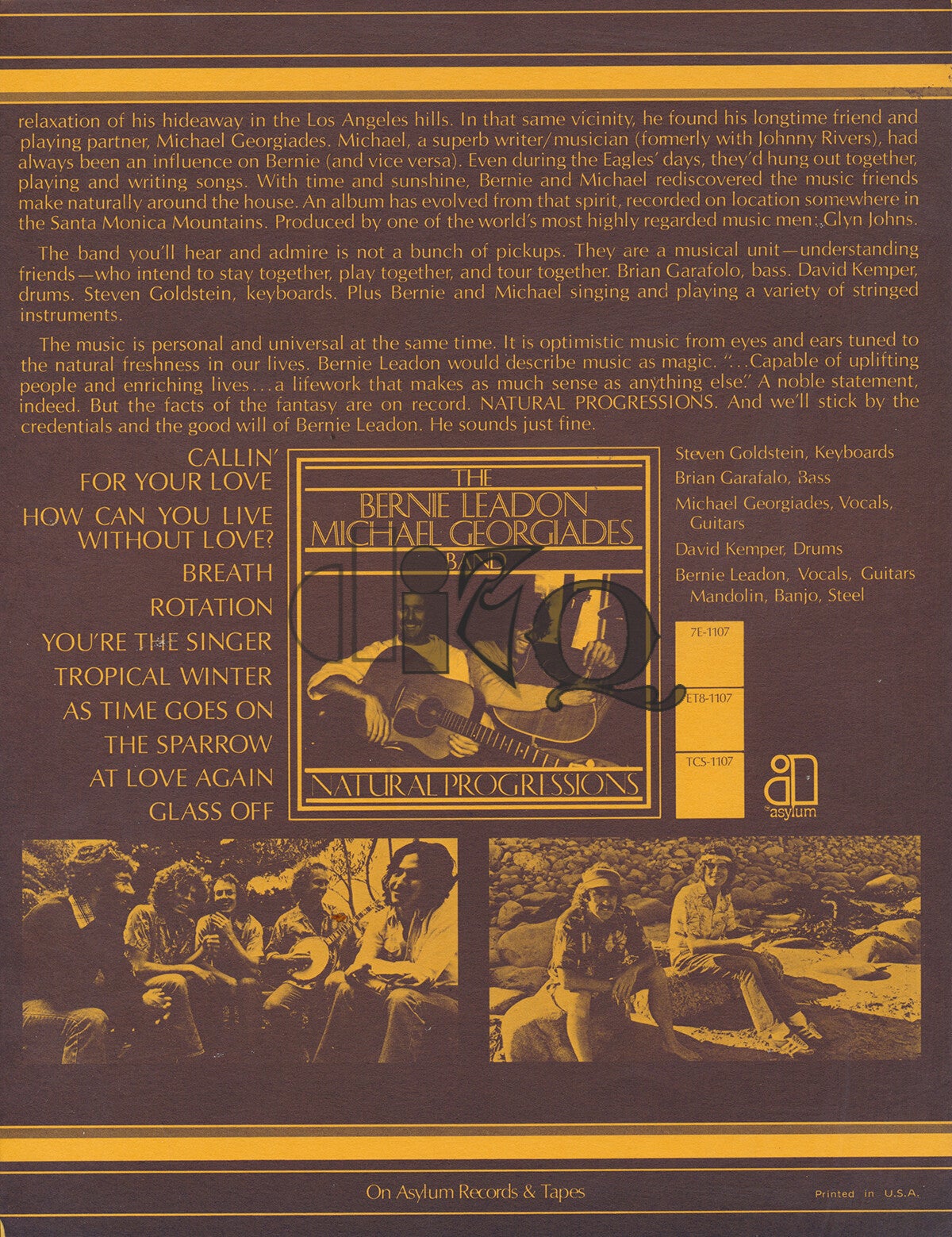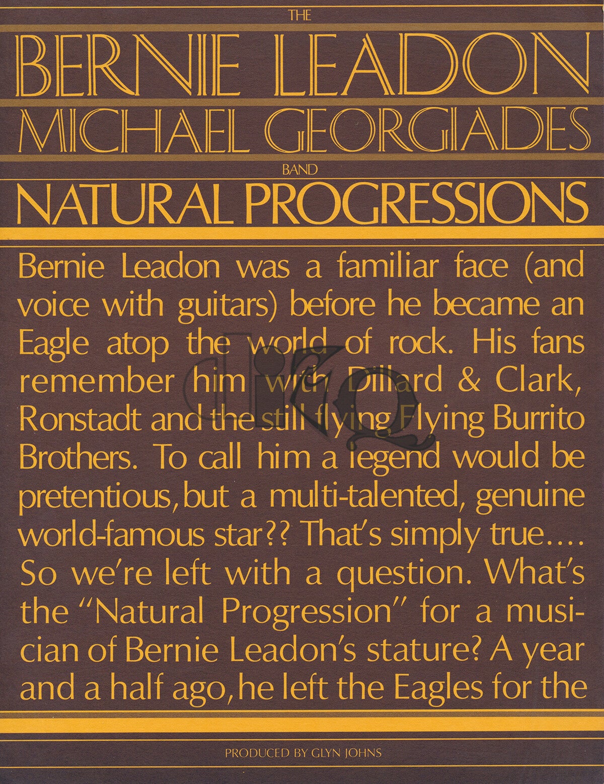 Bernie Leadon / Michael Georgiades Band - 1977 [USA] - Press Release