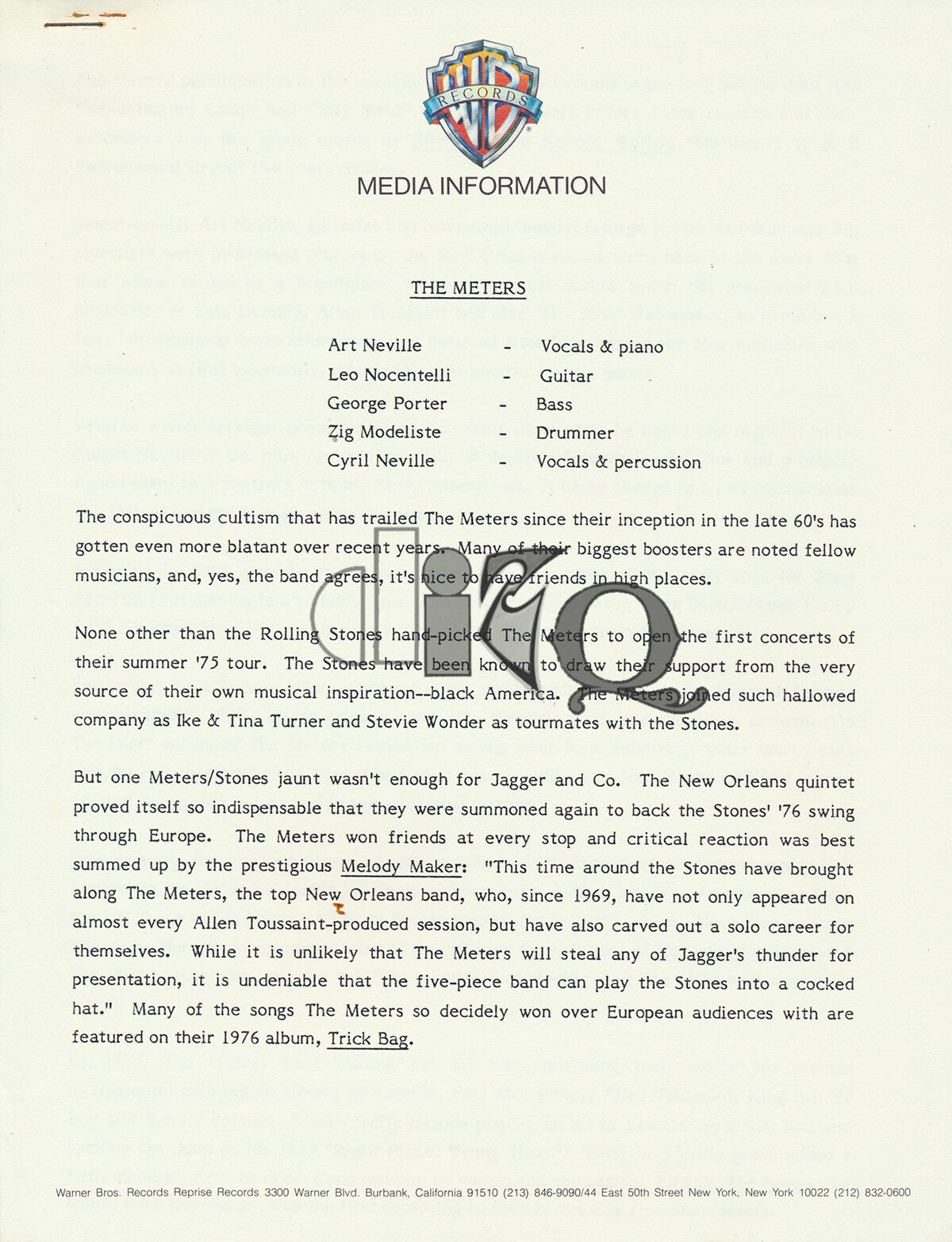 [100542] Warners Bros. Records, Burbank. USA. May 1977. 28.0 x 21.5cm. 3pp. Complete with 24.0 x 17.5cm press photo. Condition: excellent.