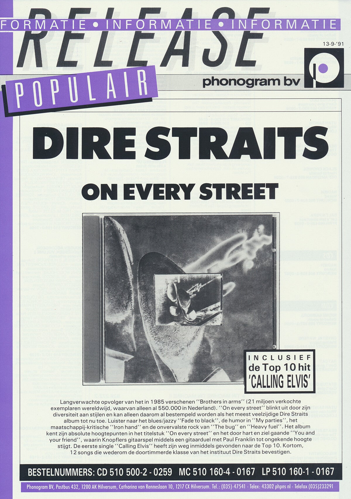 Dire Straits (and others) - On Every Street - September 13, 1991 [Holland] - Press Release