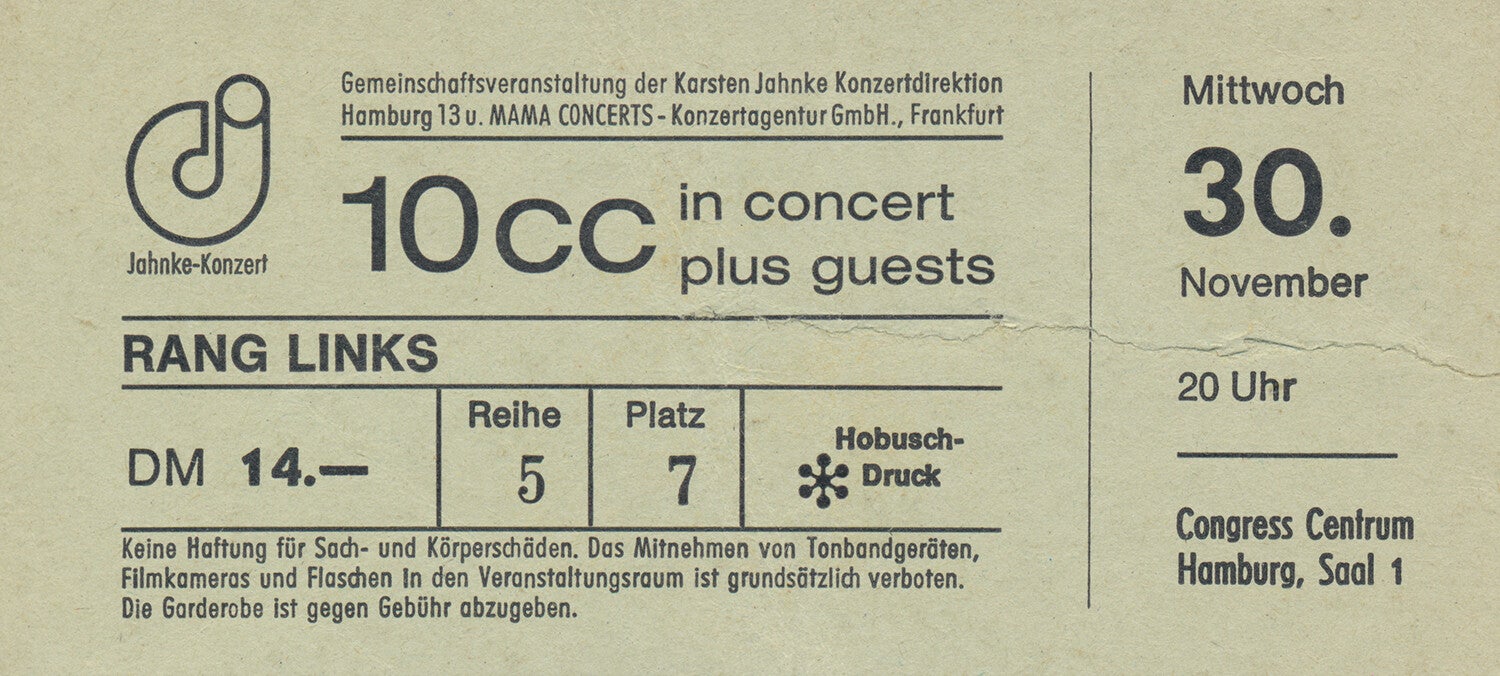 [100634] Mama Concerts. Congress Centrum, Hamburg, November 30, 1977. 12.4x5.7cm. Condition: very good, tear repaired on the back.