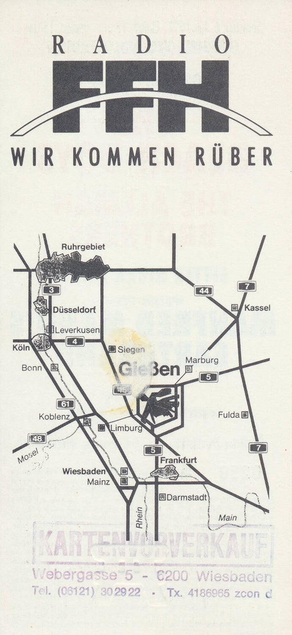 [100656] Concertbüro Hänsel. VFB-Waldstadion, Giessen, July 6, 1991. 8.4x18.4cm. Condition: very good plus.