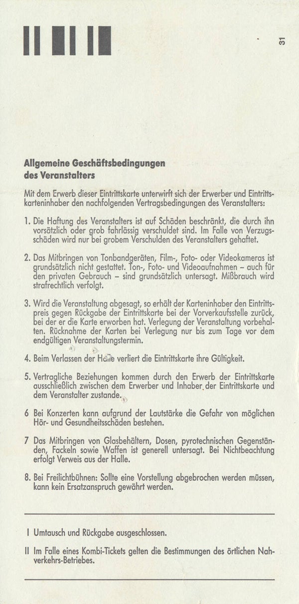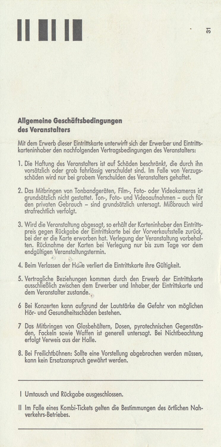 [100658] Mama Concerts & Rau. Westfalenhalle, Dortmund, September 18, 1993. 16.7x8.4cm. Condition: excellent.