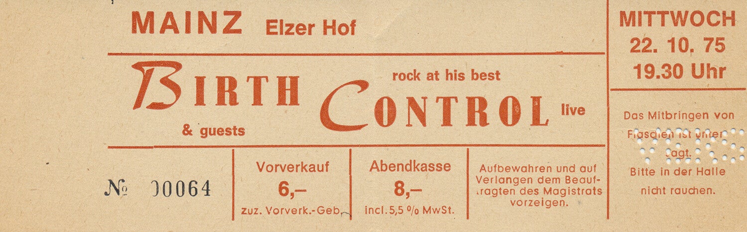Birth Control - Elzer Hof, Mainz, October 22, 1975 [Germany] - Ticket Stub