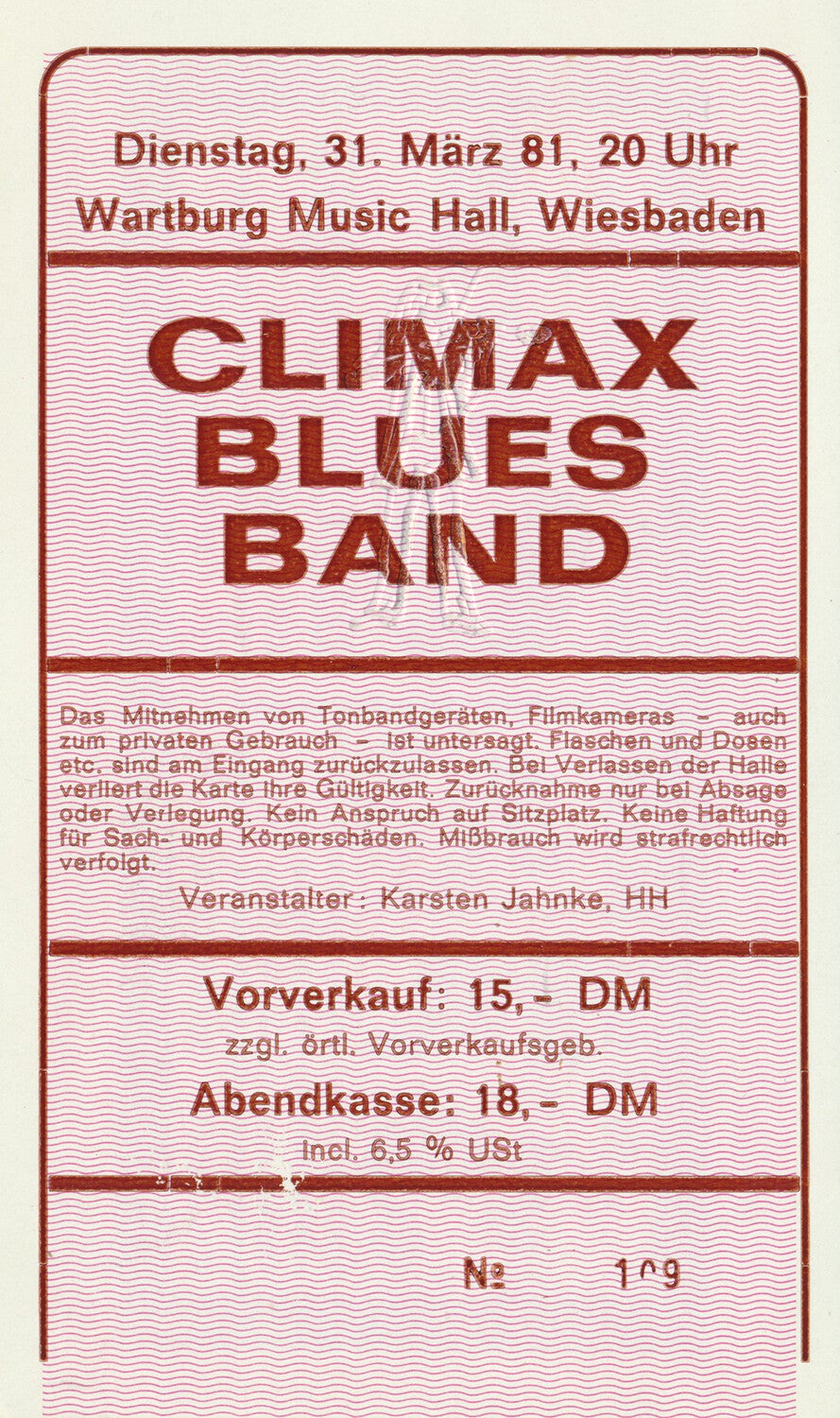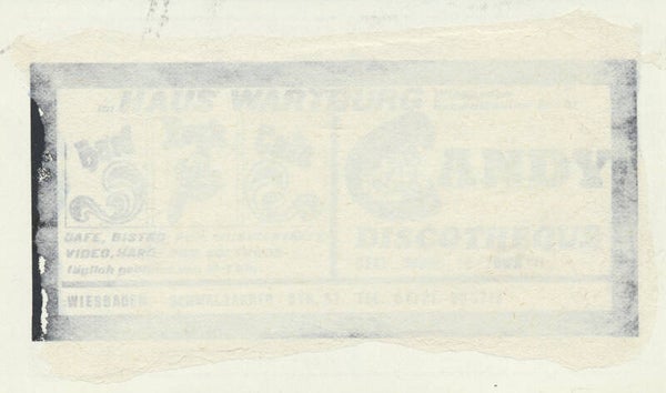 [100702] Karsten Jahnke. Wartburg Music Hall, Wiesbaden, March 31, 1981. 7.9x13.2cm. Condition: very good plus, glue residue on back.