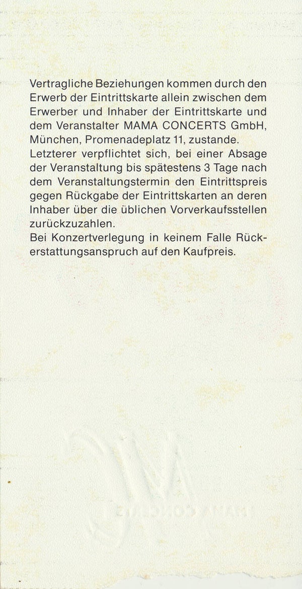 [100717] Mama Concerts. Philipshalle, Düsseldorf, December 2, 1987. 7.7x14.8cm. Condition: excellent.