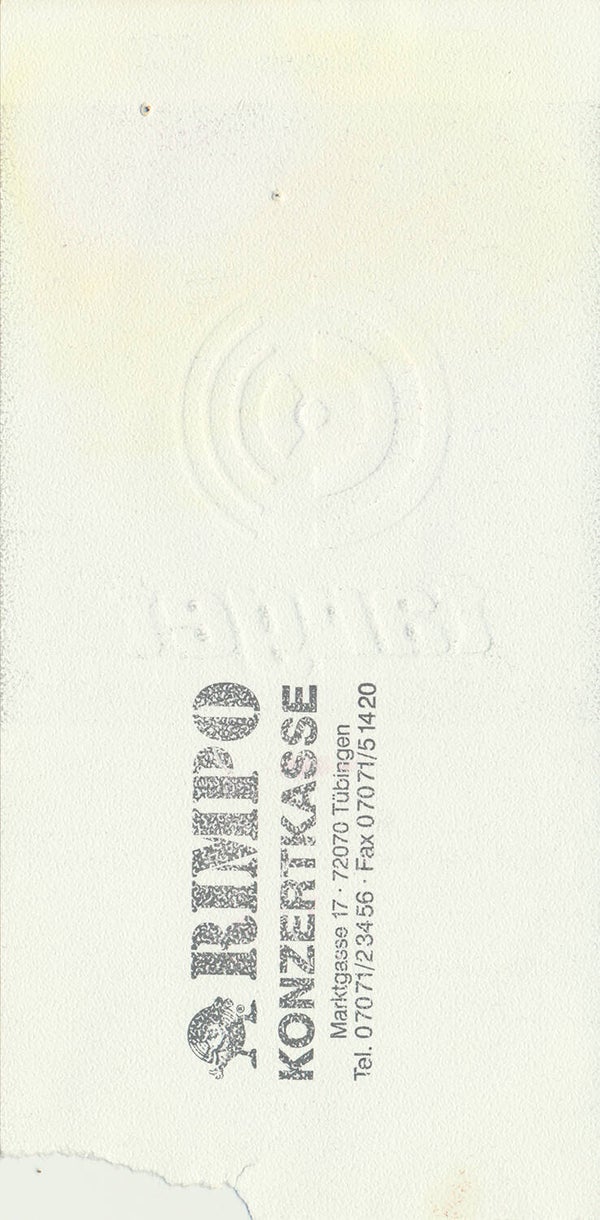 [100725] Music Circus. Messe Congresscentrum, Stuttgart, March 8, 1998. 7.6x15.5cm. Condition: very good plus, tiny pinholes.
