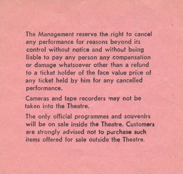 [101074] Odeon Theatre, Birmingham, March 22, 1985. 7.5x7.2cm. Condition: very good plus, folded.
