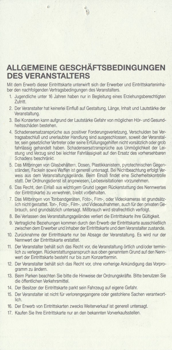 [101053] Marek Lieberberg & Ossy Hoppe. Frankenhalle, Nürnberg, April 4, 1993. 8.0x16.0cm. Condition: very good plus, pinholes.