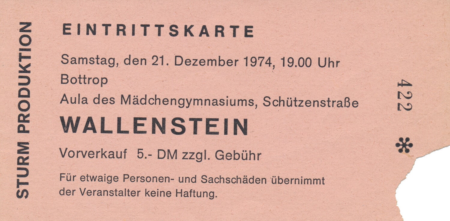 [101006] Sturm Produktion. Aula des Mädschengymnasiums, Bottrop, December 21, 1974. 12.0x6.0cm. Condition: excellent, cancellation tear.
