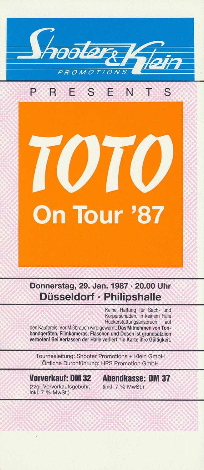 [100984] Shooter & Klein Promotions. Philipshalle, Düsseldorf, January 29, 1987. 8.7x20.0cm. Condition: excellent.