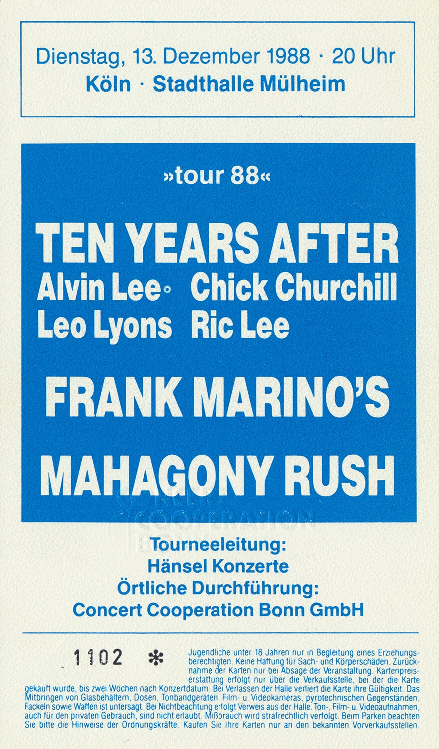 [100973] Hänsel Konzerte. Stadthalle Mülheim, Cologne, December 13, 1988. 8.5x14.3cm. Condition: excellent.
