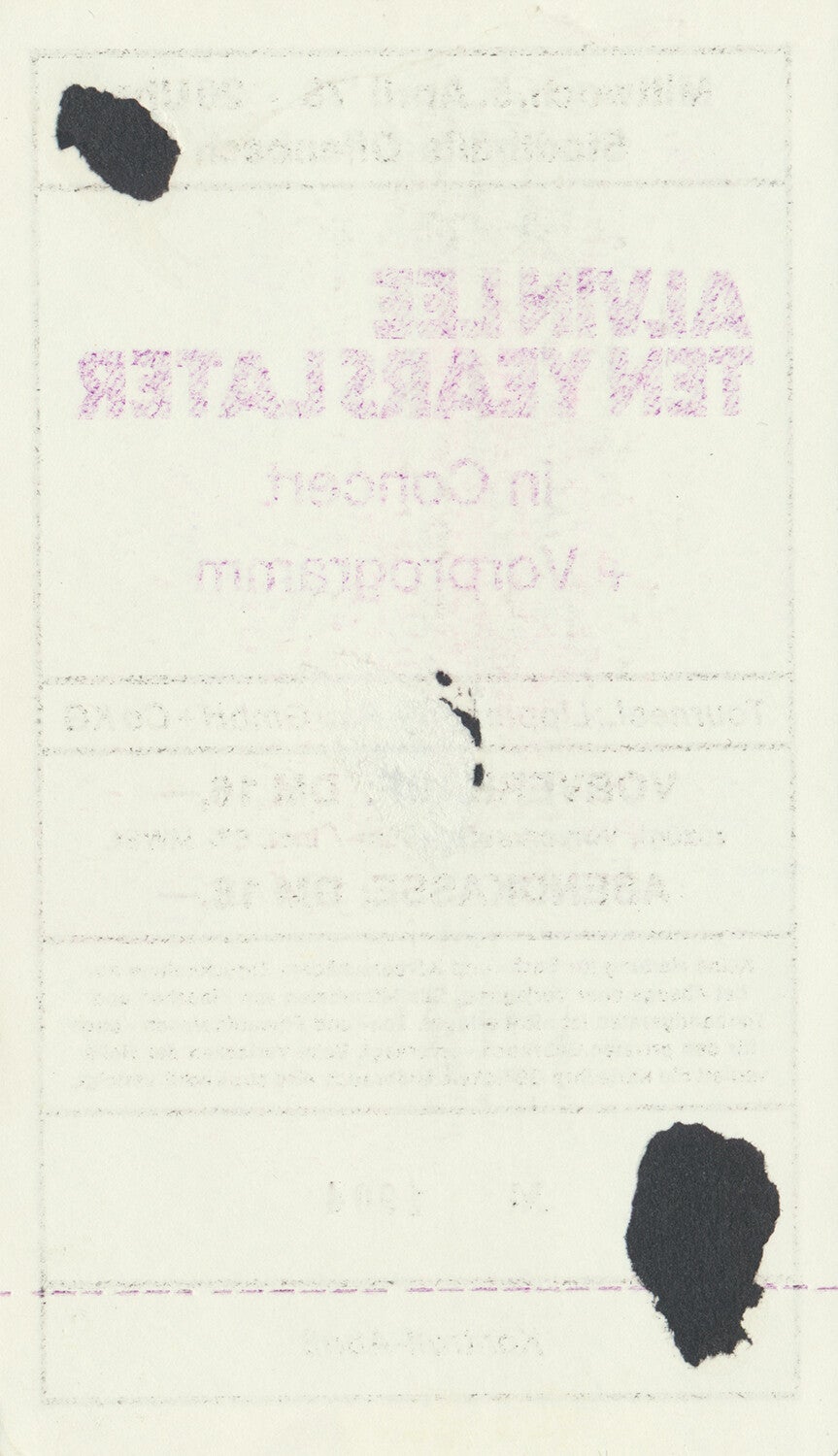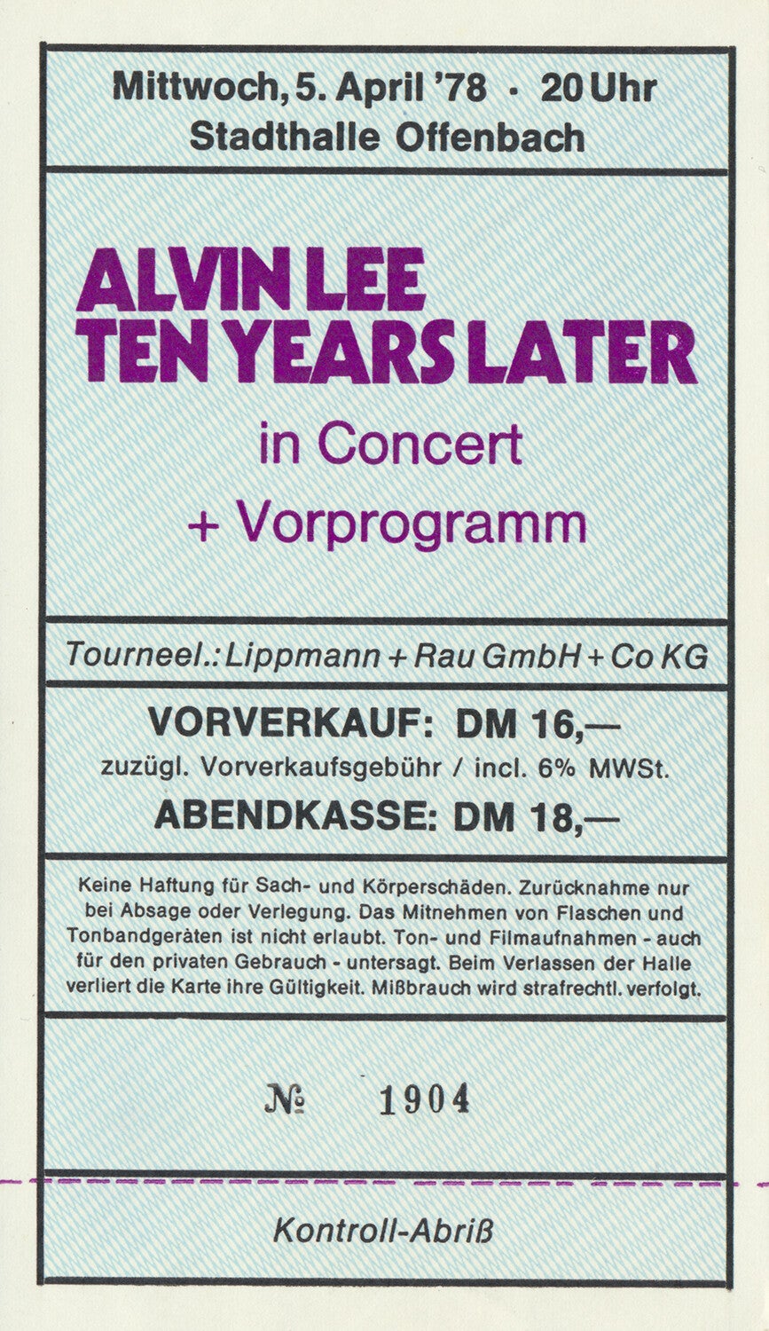 [100966] Lippmann + Rau. Stadthalle, Offenbach, April 5, 1978. 8.3x14.0cm. Condition: very good plus, paper residue on the back.