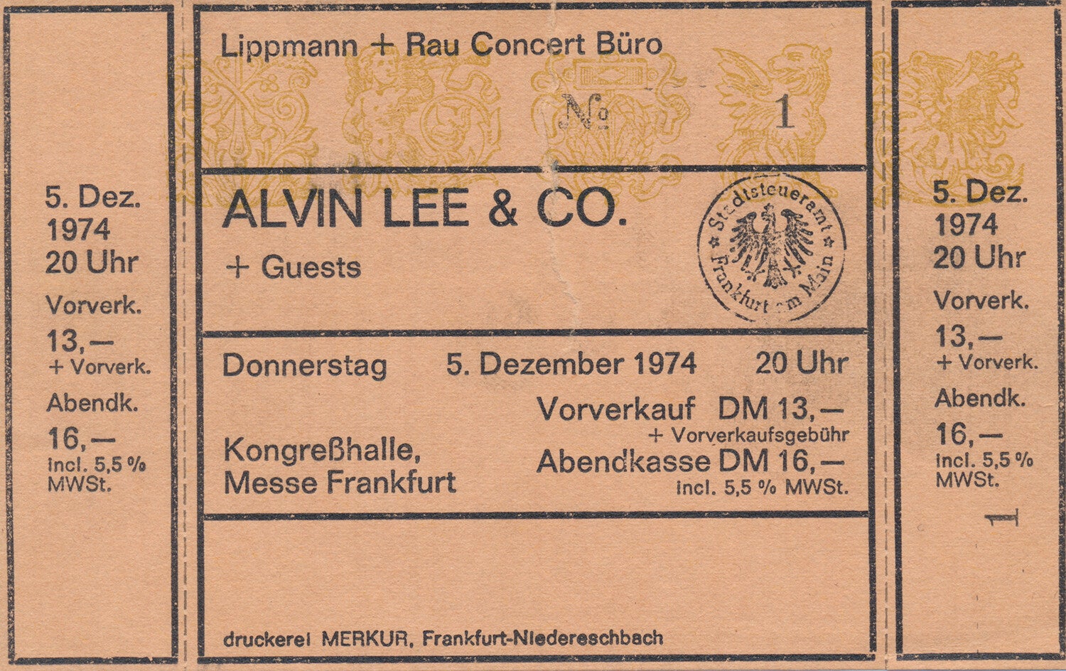 [100963] Lippmann + Rau. Kongresshalle, Frankfurt, December 5, 1974. 12.3x7.8cm. Condition: very good plus, cancellation tear.