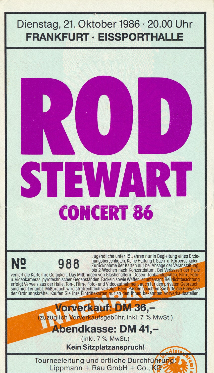 [100939] Lippmann + Rau. Eissporthalle, Frankfurt, October 21, 1986. 8.7x14.8cm. Condition: very good plus, folded.