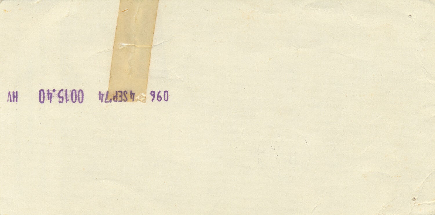 [100857] Pink Concert. Cirkus-Krone-Bau, Munich, September 10, 1974. 7.0x13.9cm. Condition: very good plus, folded, cancellation tear repaired.