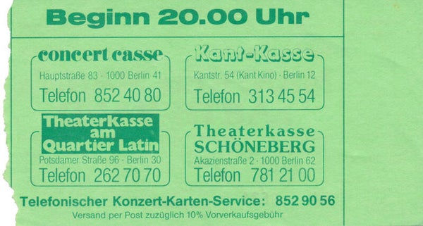 [100839] Sunrise. Eissporthalle, Berlin, May 4, 1986. 13.5x7.4cm. Condition: excellent, cancellation tear.