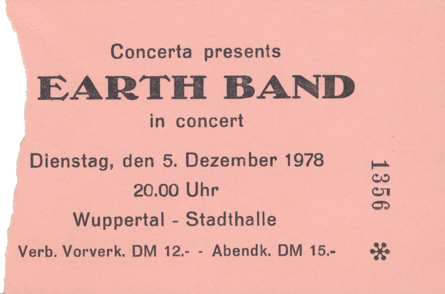 [100832] Concerta. Stadthalle, Wuppertal, December 5, 1978. 10.0x6.8cm. Condition: excellent, cancellation tear.