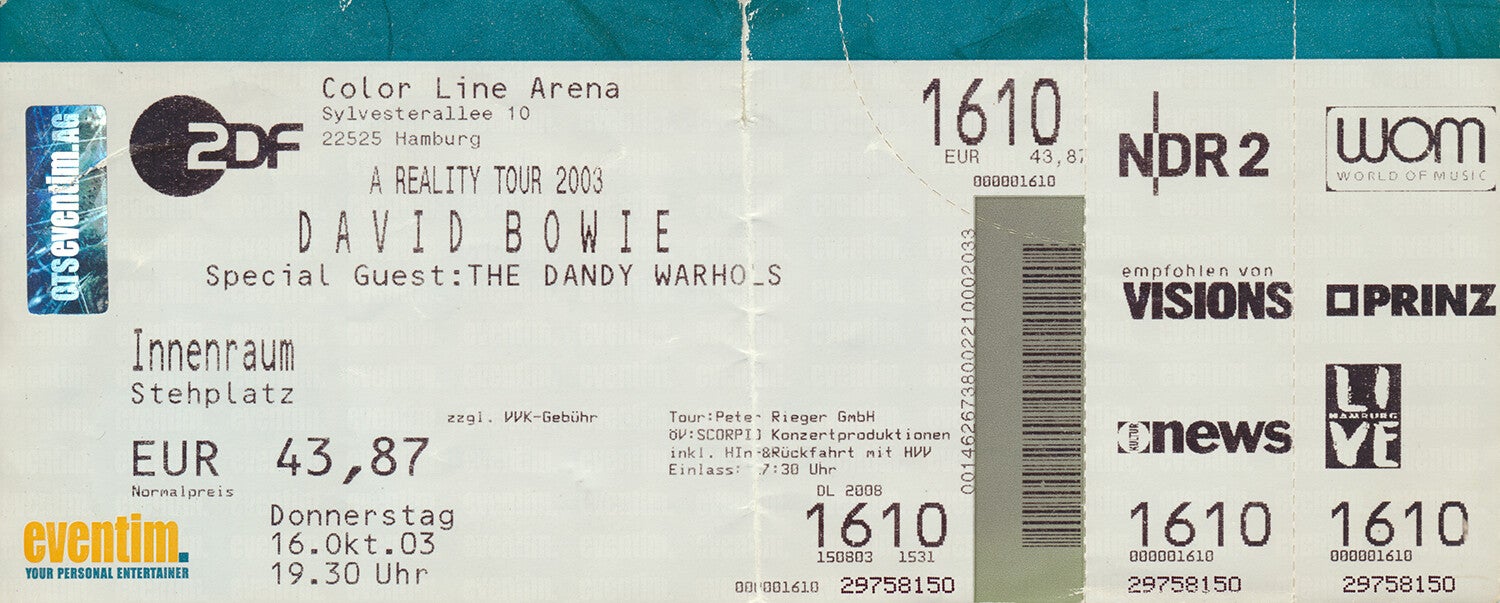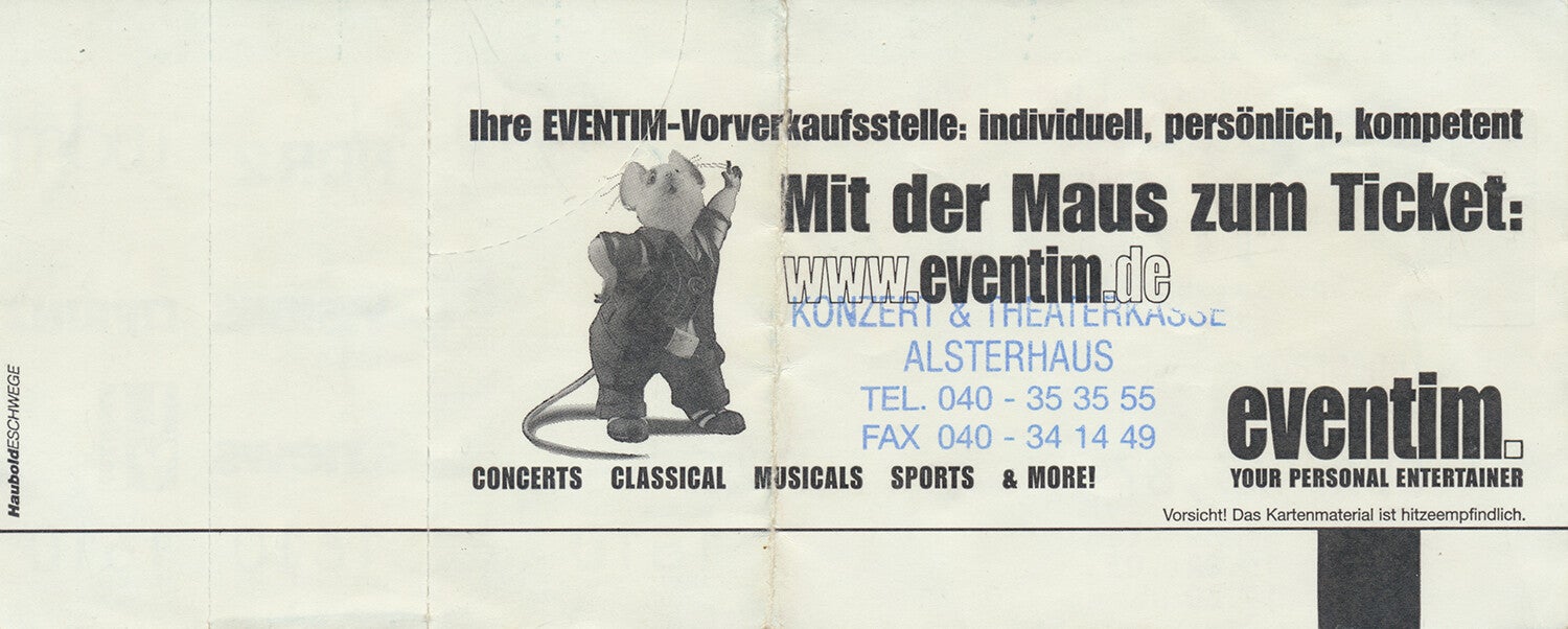 [101290] Peter Rieger. Color Line Arena, Hamburg, October 16, 2003. 20.2x8.2cm. Condition: very good, folded.