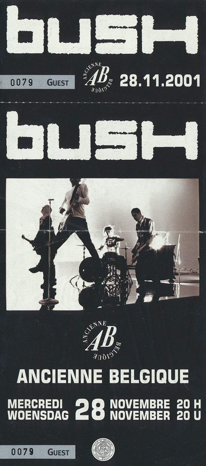 [101274] Ancienne Belgique, Brussels, November 28, 2001. 9.0x20.3cm. Condition: very good plus, folded.