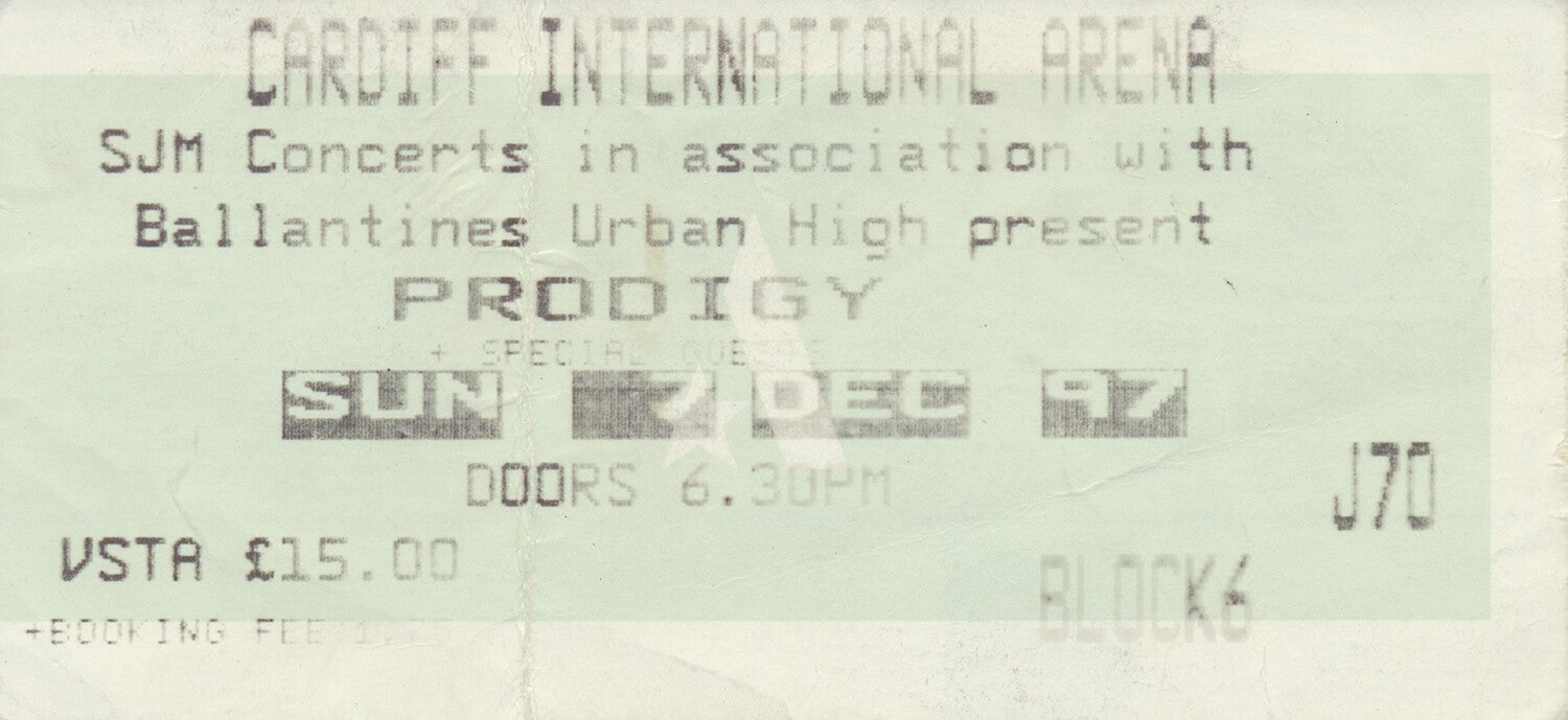[101270] SJM Concerts. International Arena, Cardiff, December 7, 1997. 10.6x5.0cm. Condition: very good plus, folded.