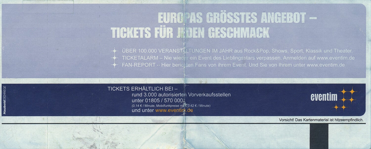 [101269] Contra Promotion. Arena Nürnberger Versicherung, Nürnberg, May 5, 2012. 20.4x8.2cm. Condition: very good plus, folded.