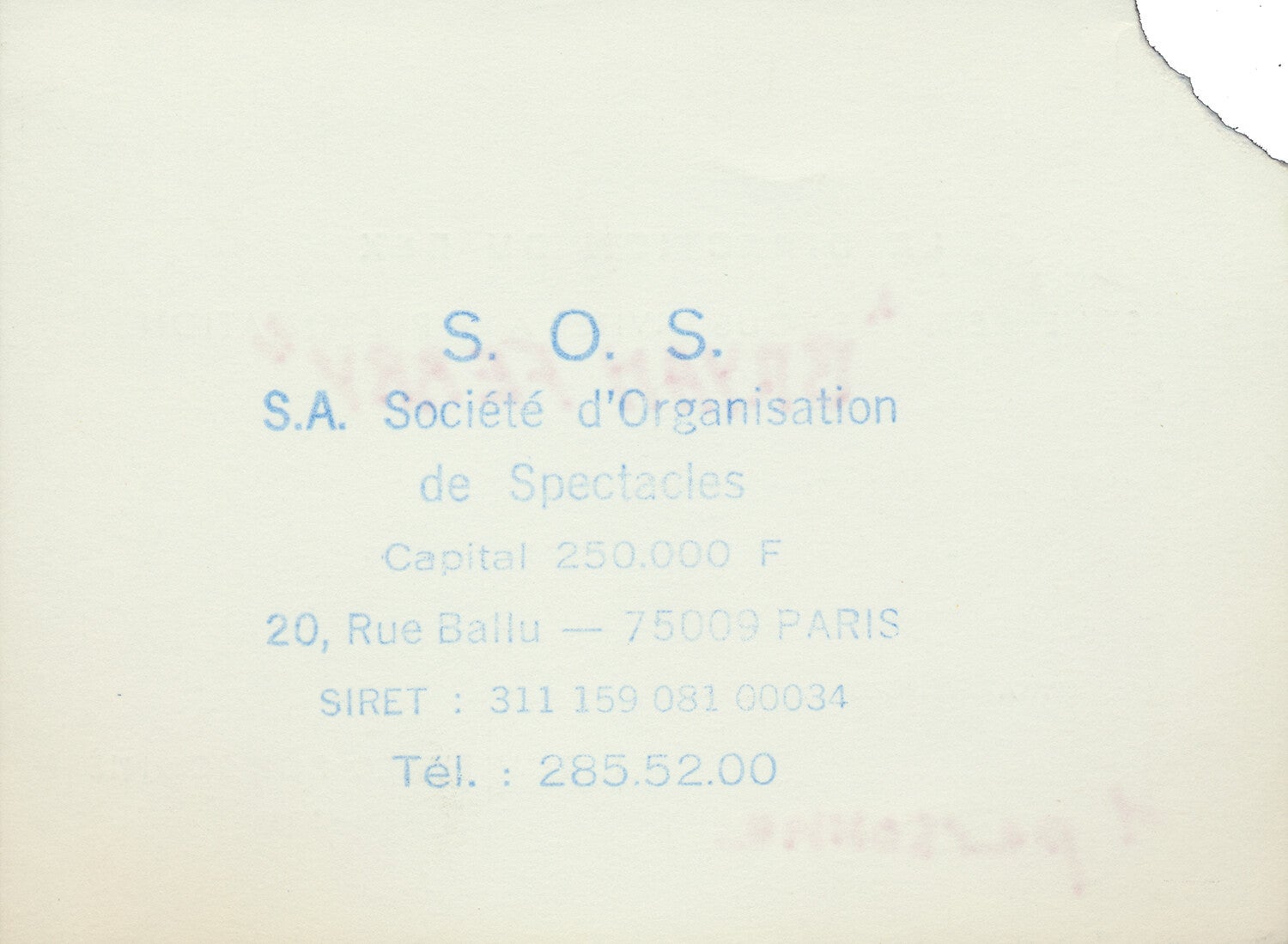 [101232] S.A. Société d'Organisation. Grand Rex, Paris, March 9, 2000. 12.0x9.0cm. Condition: excellent, cancellation tear.