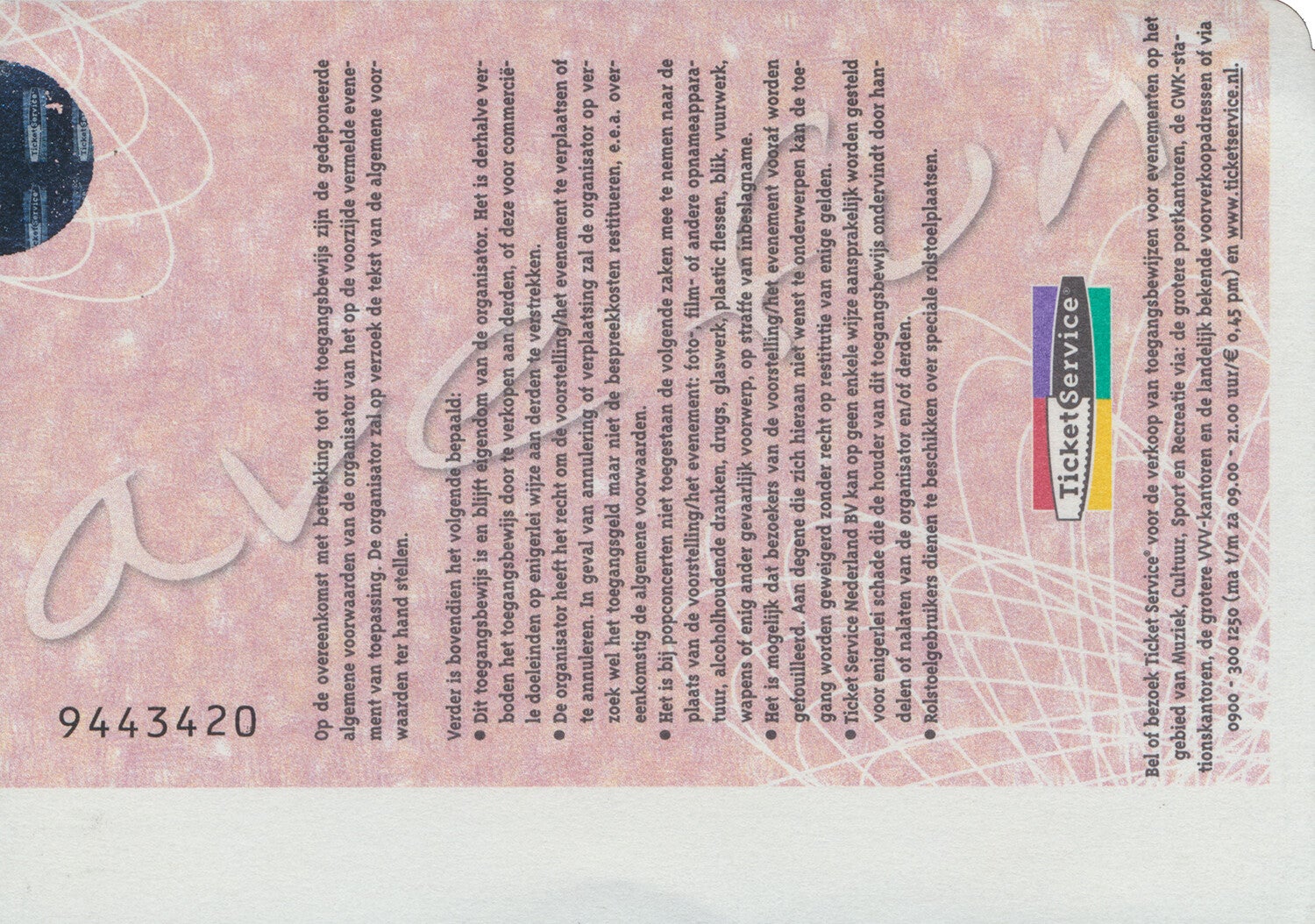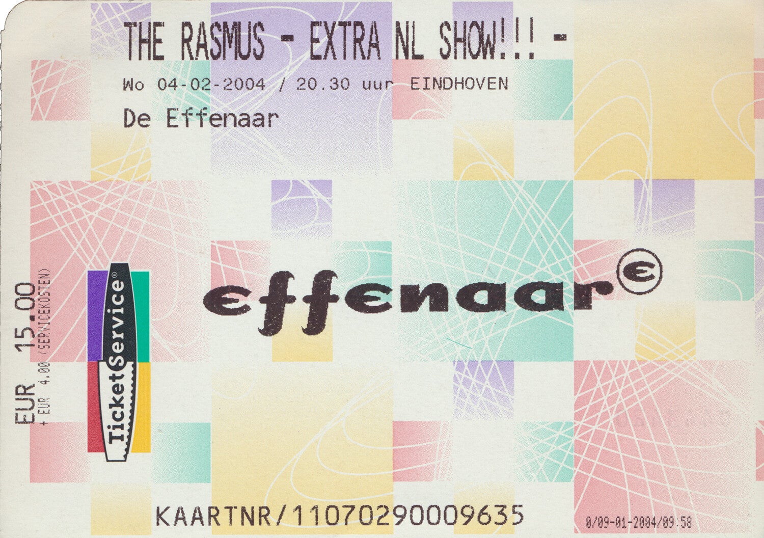 The Rasmus - Effenaar, Eindhoven, February 2, 2004 [Holland] - Ticket Stub