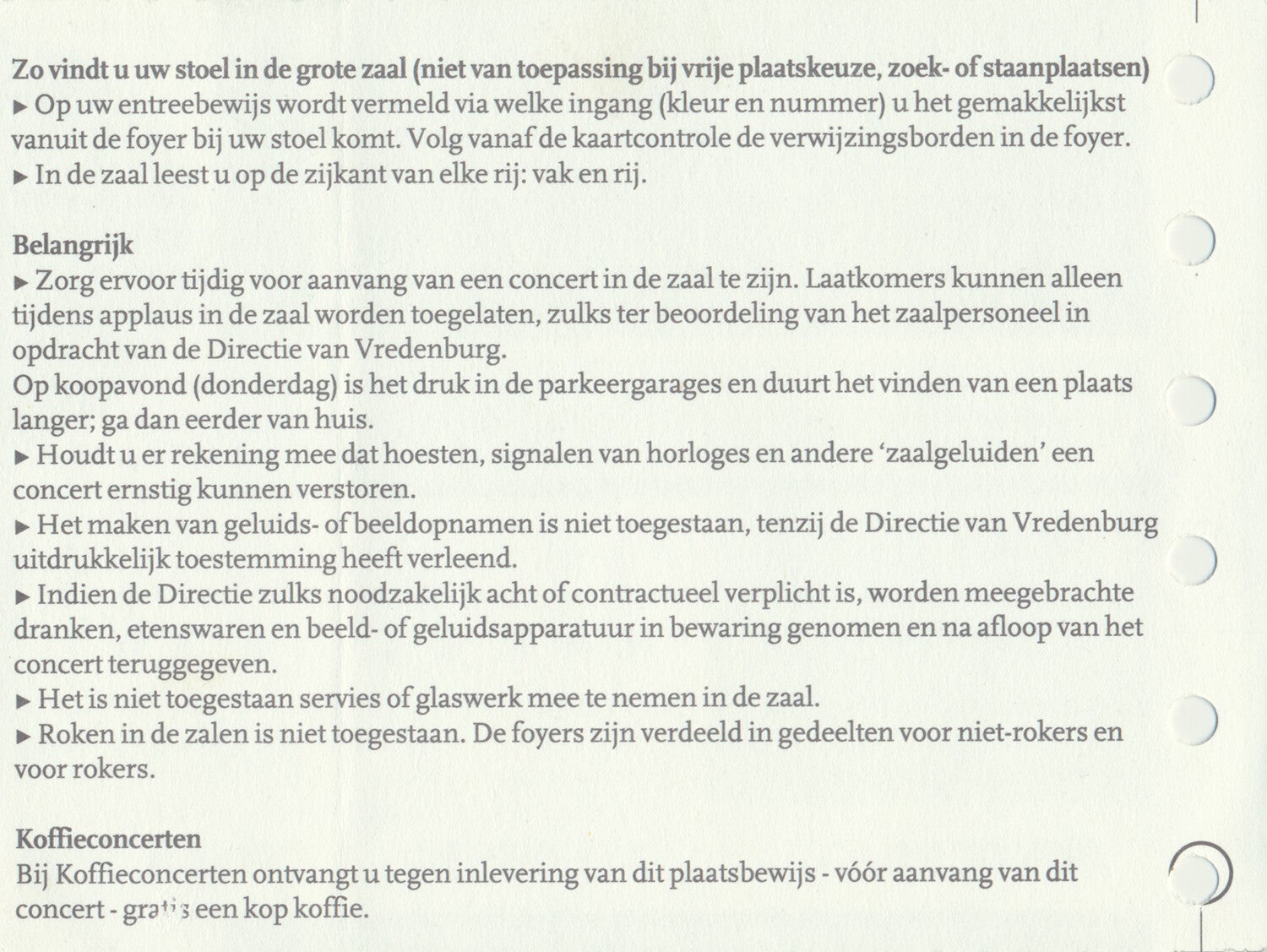 [101163] Muziekcentrum Vredenburg, Utrecht, March 31, 1994. 10.2x7.5cm. Condition: excellent.