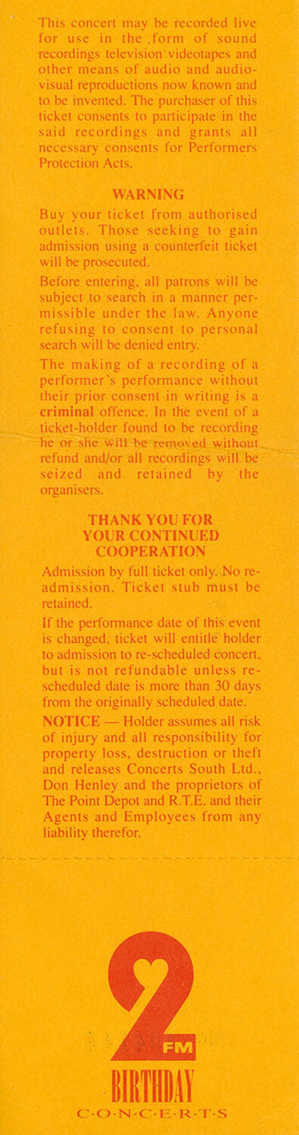 [101150] The Point Depot, Dublin, November 3, 1989. 21.7x5.8cm. Condition: excellent.