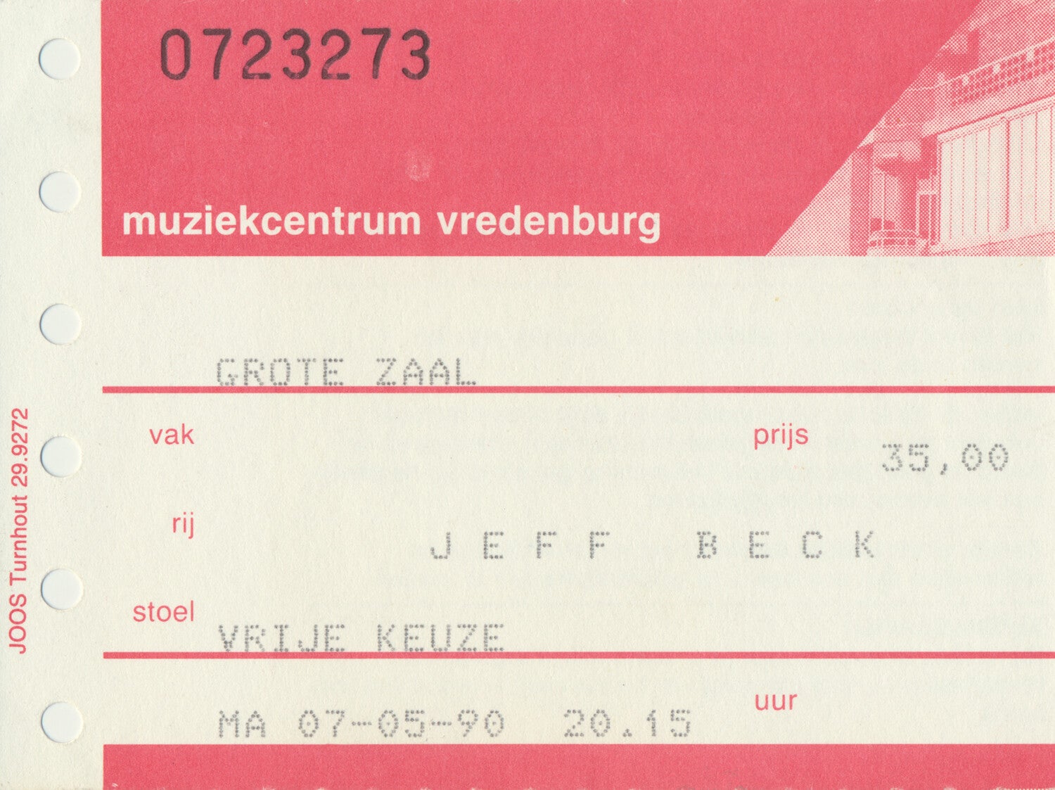 Jeff Beck - Muziekcentrum Vredenburg, Utrecht, May 7, 1990 [Holland] - Ticket Stub