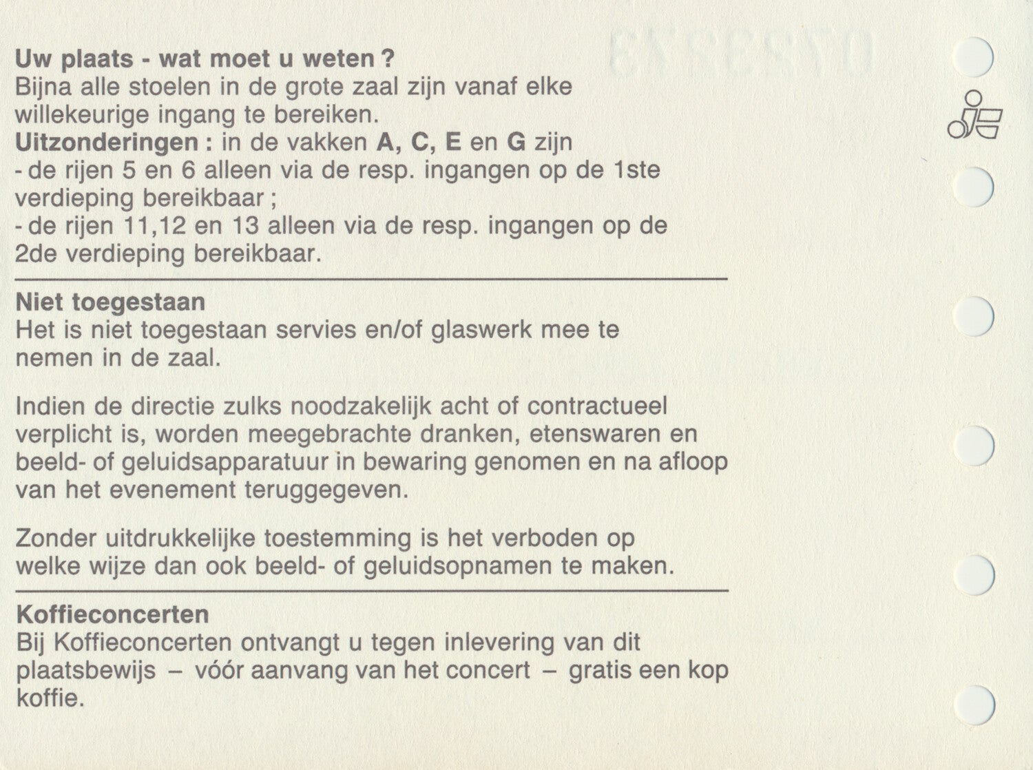 [101137] Muziekcentrum Vredenburg, Utrecht, May 7, 1990. 10.2x7.5cm. Condition: excellent.
