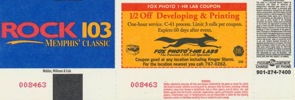[101119] Mud Island Amphitheater, Memphis, August 21, 1992. 14.2x5.0cm. Condition: excellent.