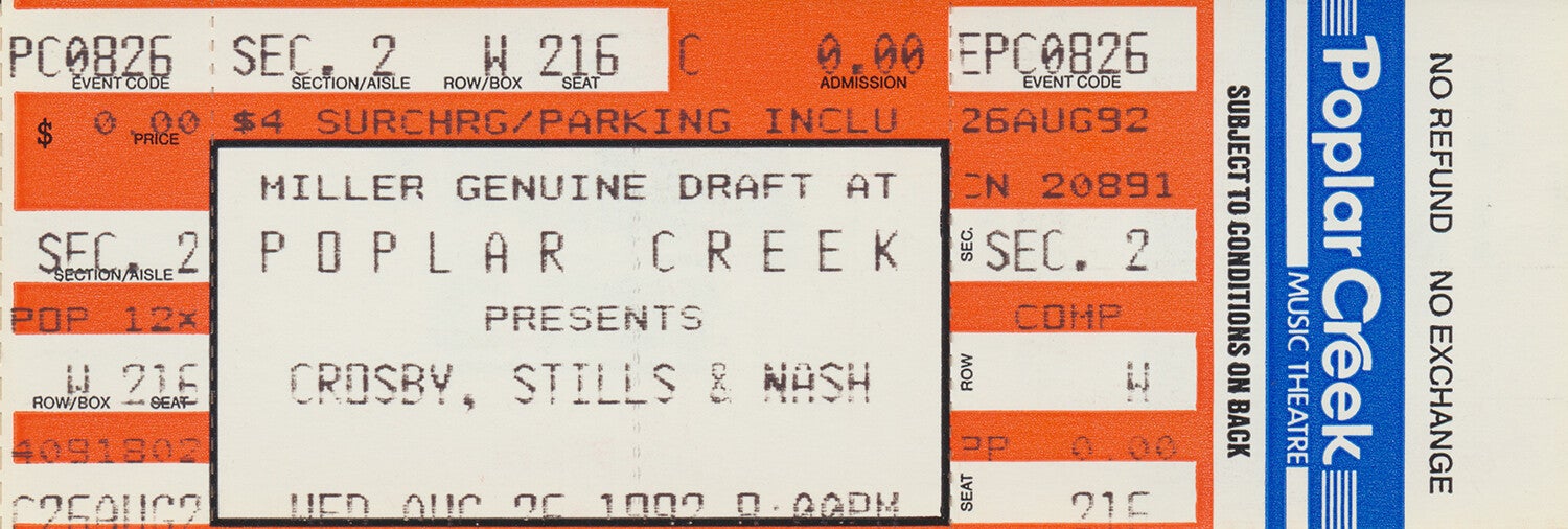 Crosby, Stills & Nash - Music Theater, Poplar Creek, August 26 1992 [USA] - Ticket Stub