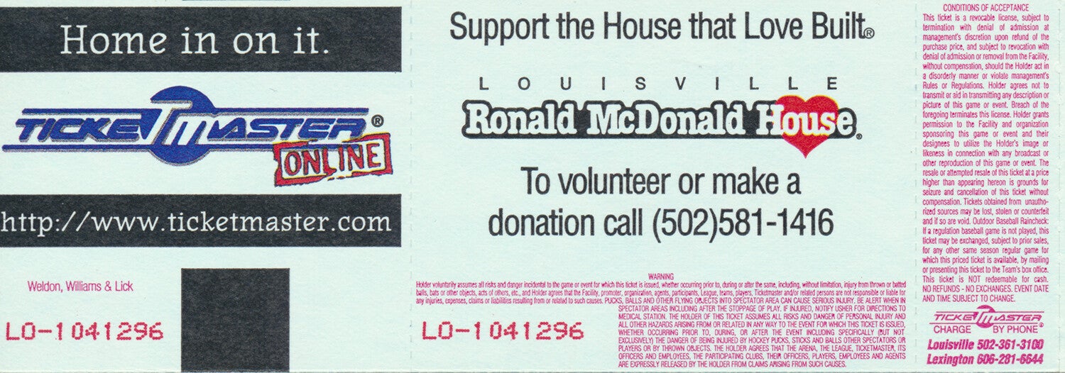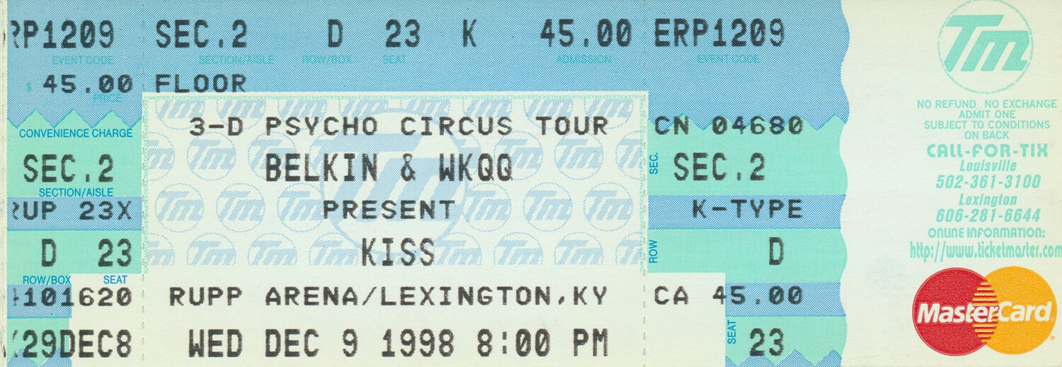 [101109] Belkin Productions. Rupp Arena, Lexington, December 9, 1998. 14.2x5.0cm. Condition: excellent.