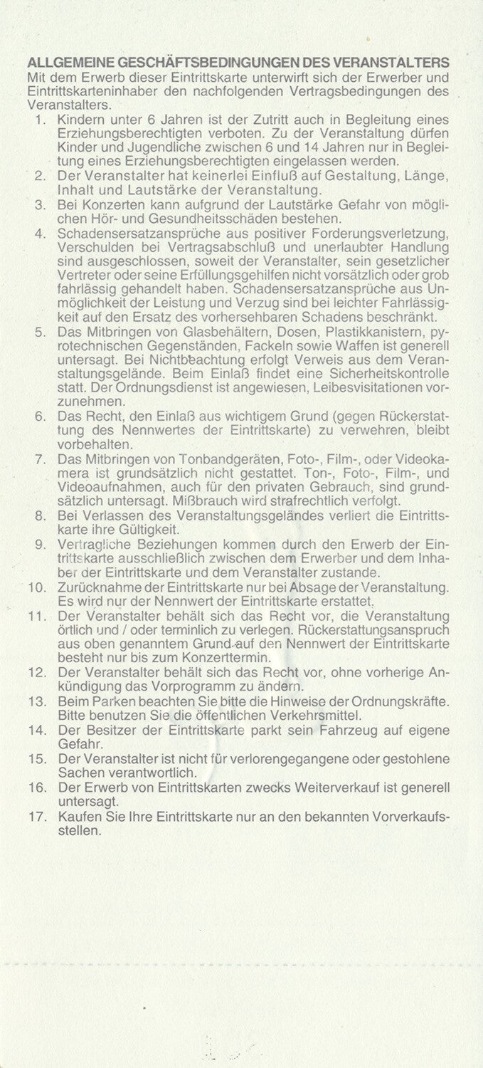 [101101] Marek Lieberberg. Ostseehalle, Kiel, August 24, 1993. 8.0x17.7cm. Condition: excellent.