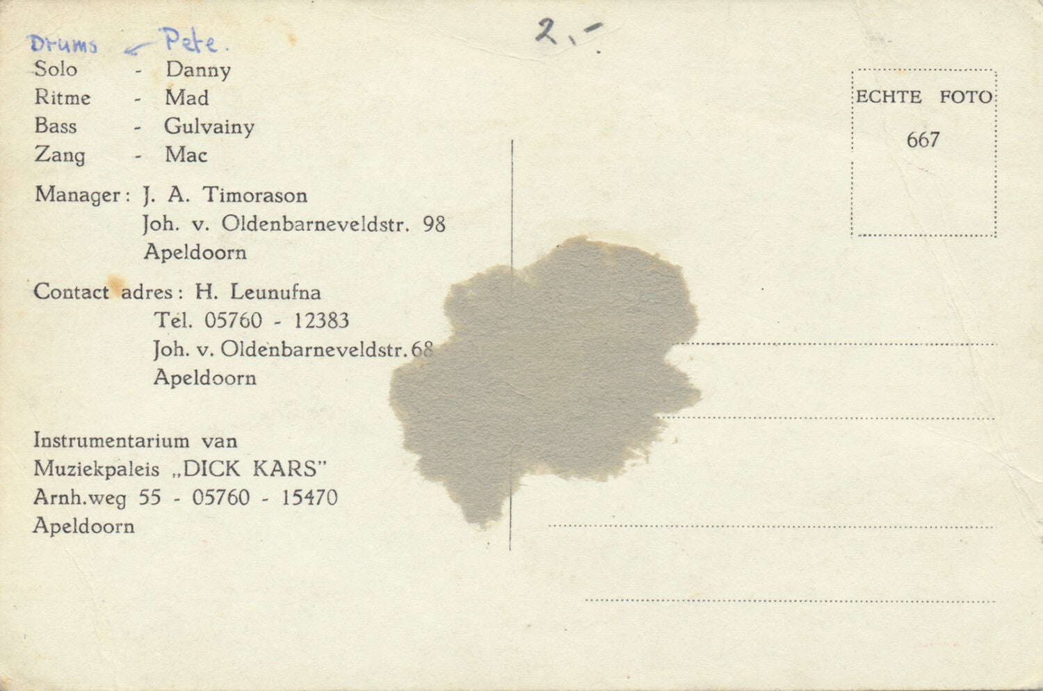 [101503] Nederbeat/Nederbiet act from Apeldoorn. 1960s. 9.0x13.8cm. Condition: very good.