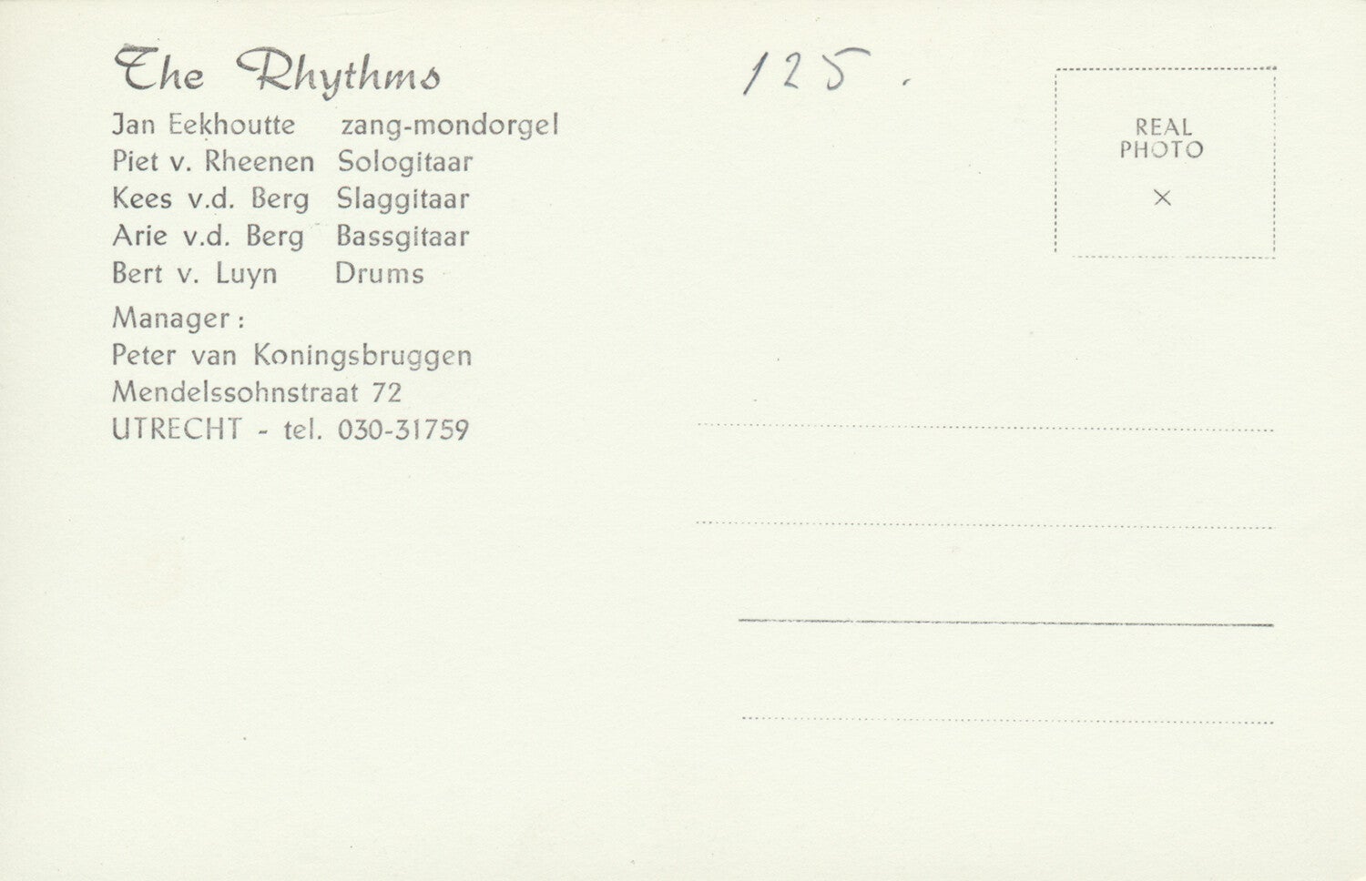 [101480] Nederbeat/Nederbiet act from Utrecht. 1960s. 13.9x9.0cm. Jan Eekhoutte - Piet van Rheenen - Kees v.d. Berg - Arie v.d. Berg - Bert van Luyn. Condition: excellent.