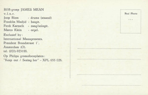 [101446] Nederbeat/Nederbiet act from Amsterdam. 1960s. 13.8x8.8cm. Joop Blom - Franklin Madjid - Ferdi Karmelk - Marco Klein. Condition: very good plus.