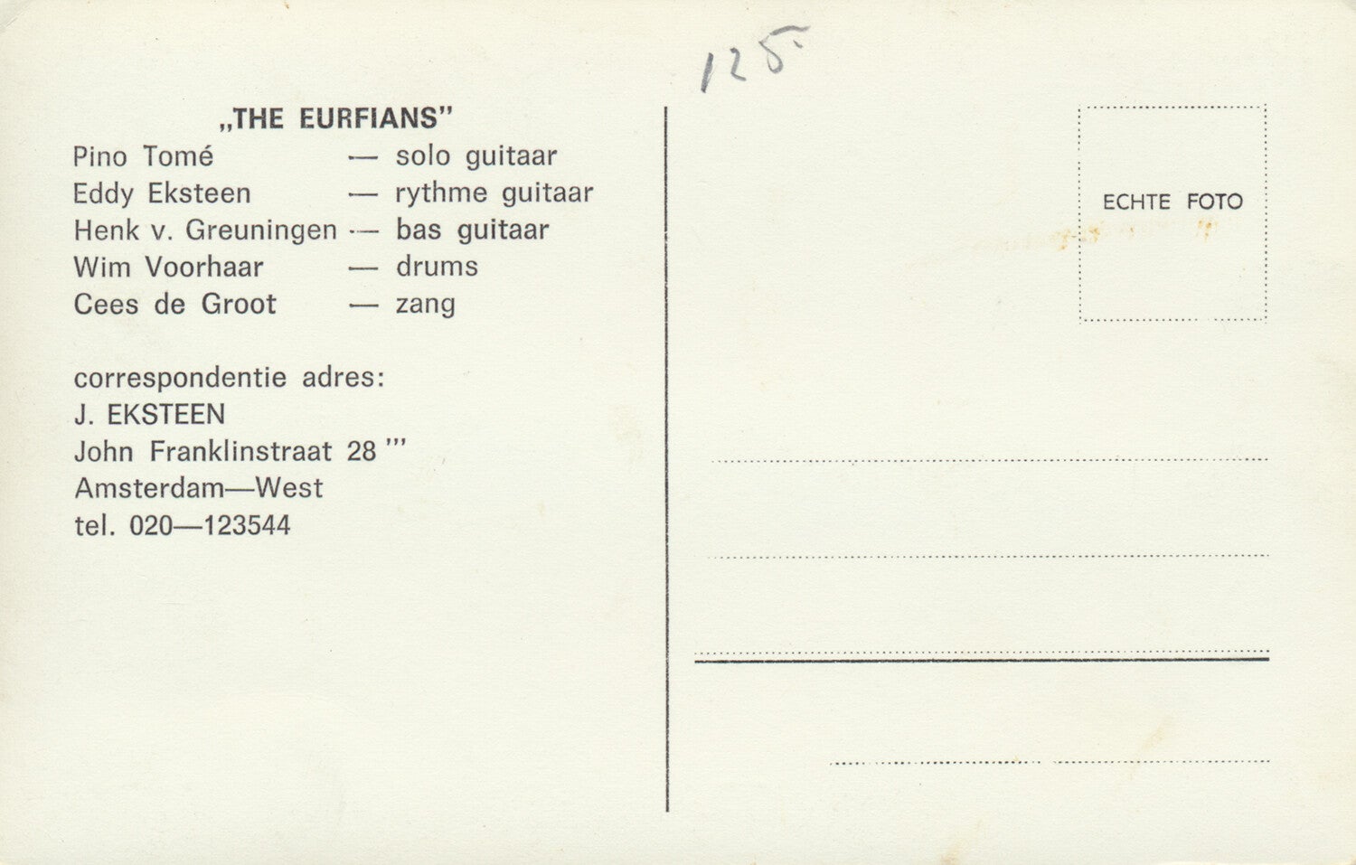 [101418] Nederbeat/Nederbiet act Amsterdam. 1960s. 14.0x8.9cm. Pino Tomé - Eddy Eksteen - Henk van Greuningen - Wim Voorhaar - Cees de Groot. Condition: very good plus.