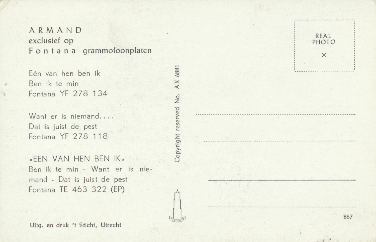 Armand - 1960s [Holland] - Publicity Postcard