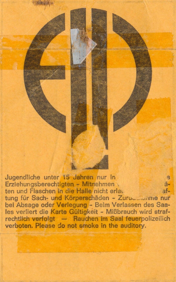 [100754] Lippmann + Rau + Schleifer. Eisstadion, Mannheim, May 21, 1974. 12.4x7.8cm. Condition: very good, folded, cancellation tear repaired, glue residue on back.