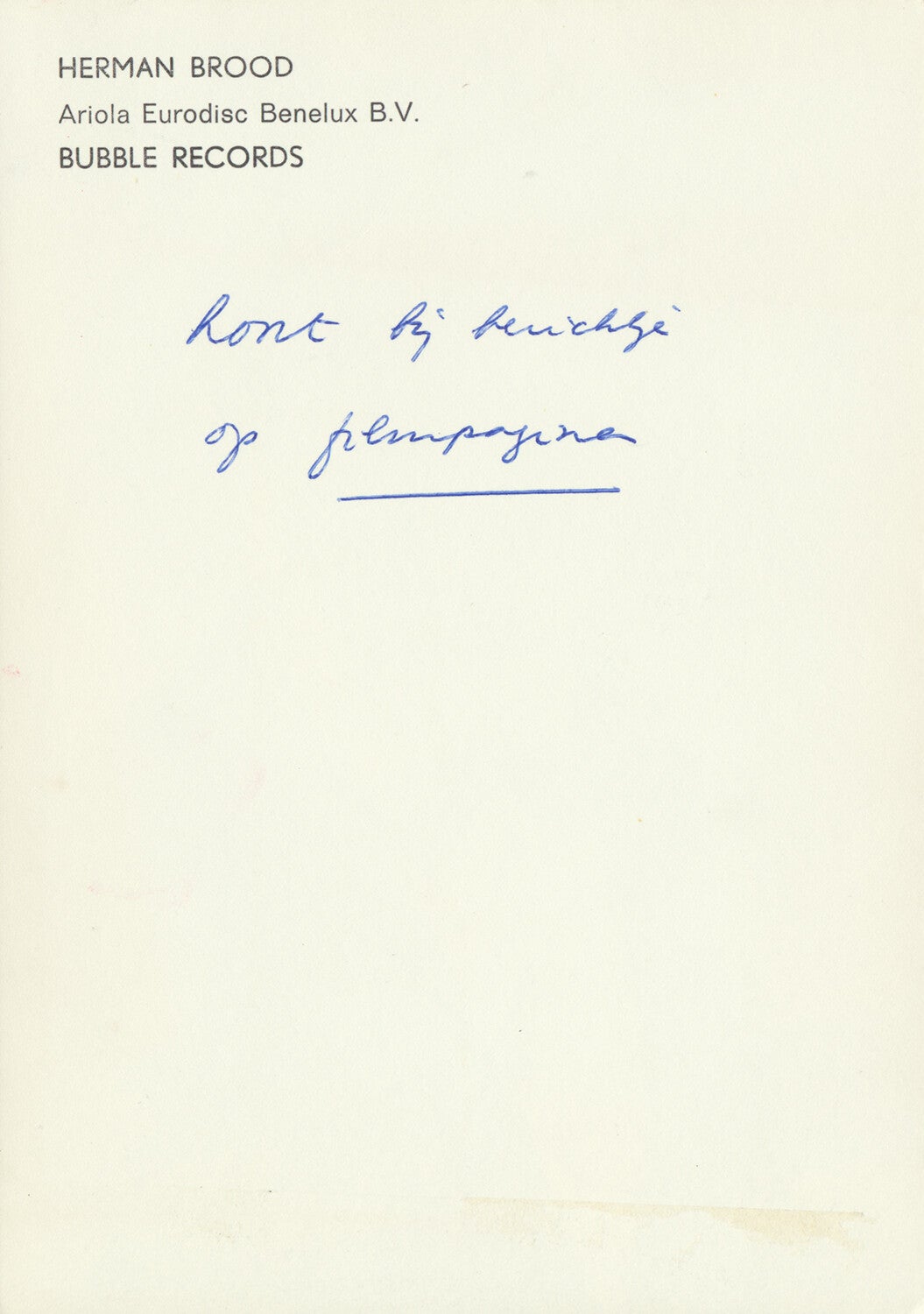 [101579] Bubble Records / Ariola Eurodisc Benelux BV. 1970s. 12.5x17.6cm. Condition: excellent.
